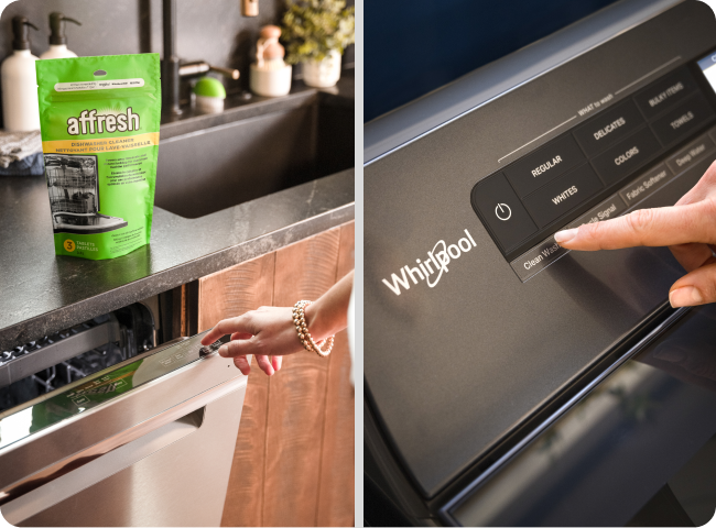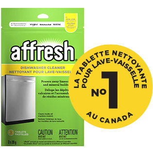Chaque tablette nettoyante affresh® facile à utiliser est spécialement formulée pour éliminer les dépôts calcaires et les résidus minéraux de votre lave-vaisselle, pendant que votre détergent lave vos assiettes de façon sécuritaire2.