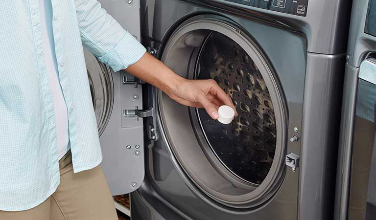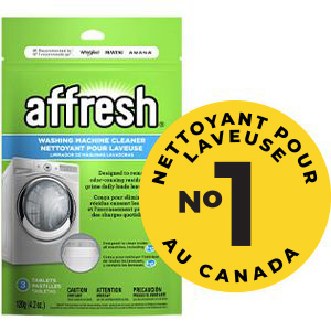 Le nettoyant pour laveuse affresh® pénètre, dissout et élimine les résidus qui causent les odeurs, rendant votre laveuse propre et fraîche.