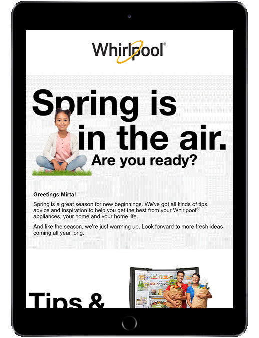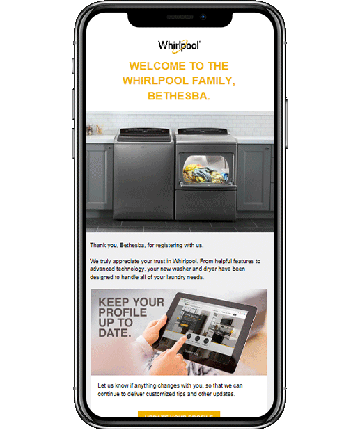 Merci d'avoir choisi Whirlpool! Enregistrez votre électroménager et inscrivez-vous pour recevoir du contenu personnalisé!
