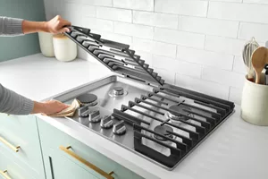Get quick access to spills on the cooktop with our industry-first EZ-2-Lift™ Hinged Cast-Iron Grates. The hinged design lets you wipe up underneath without the hassle of removing heavy grates.