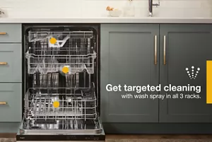 Get targeted wash action in every rack with triple wash spray. Dedicated cleaning in all 3 racks means dishes come out clean the first time.