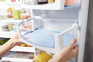 Make room for tall items. The front adjusts and slides out of the way, creating space for things like a 2-liter bottle or large salad bowl.