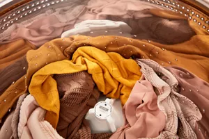Help protect fabrics with this stainless steel wash basket that gently guides clothes during the wash.