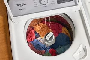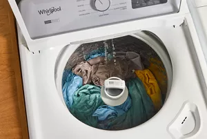 4.8 - 4.9 Cu. Ft. Whirlpool® Top Load Washer with 2-in-1 Removable Agitator.Choose how you handle each hamper with the Whirlpool® Top Load Washer with 2-in-1 Removable Agitator. The 2-in-1 Removable Agitator lets you choose how you wash. Easily swap in the agitator to help with soils or remove for extra capacity to fit large & bulky items. Presoak helps you to gently release soils with a 30 minute presoak and wash all in one cycle. Sanitize cycle cleanses loads with increased wash temps and Oxi. Cold Water Wash allows you to get a thorough clean and save on energy bills.