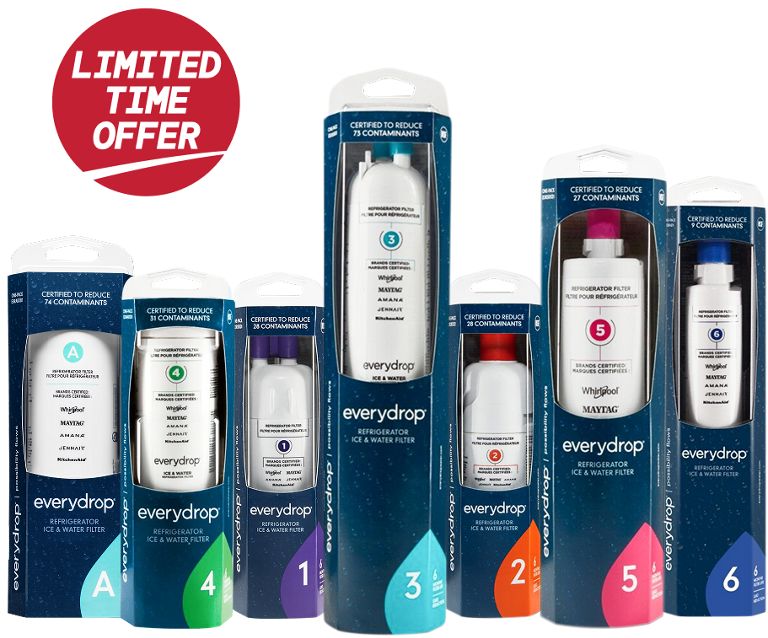 ⬥⬥Before tax. Only valid for Canadian orders on whirlpool.ca, kitchenaid.ca, everydropwater.ca, & maytag.ca from March 17 - 18, 2026. While Quantities last. Offer only applies on purchase of everydrop® Premium Filters 1-6 & Filter A. Cannot be combined with other offers, discounts, rebates and promotions.