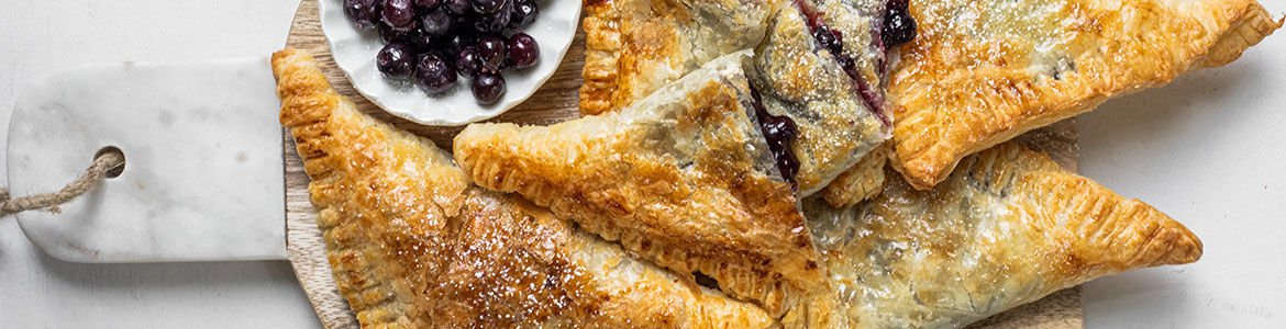 - Déroulez la pâte feuilletée au beurre et coupez-la en 4 à 6 carrés de taille égale, selon la longueur de la pâte. Déposez la garniture d'amélanches au centre de chaque carré. Repliez la pâte pour former un triangle et pincez bien les bords à l'aide d'une fourchette.