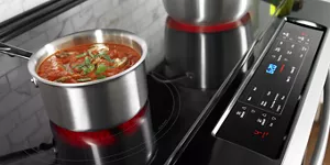 Cuisinière électrique 7 en 1 avec four à friture à l’air - 6.4 pi cuCuisinez comme vous le souhaitez avec un four électrique 7 en 1 avec friture à l’air. Vous pouvez faire frire à l'air vos aliments préférés comme les ailes et pépites de poulet et les frites directement dans votre four avec le panier de friture à air lavable au lave-vaisselle inclus. Des fonctionnalités telles que la cuisson par convection véritable et l'élément triple radiant FlexHeat™ vous offrent la possibilité de cuisiner une variété de plats.