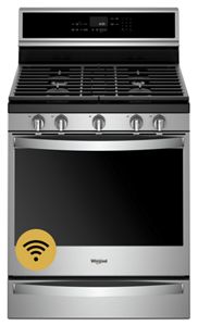 Cuisinière au gaz intelligente avec grilles EZ-2-LiftTM - 5.8 pi cuSimplifiez la cuisson à étapes multiples en utilisant votre téléphone intelligent ou votre tablette pour envoyer plusieurs instructions de cuisson à votre four en une seule fois. Cette cuisinière au gaz non encastrée avec four autonettoyant est également dotée de grilles à charnières EZ-2-Lift™ vous permettant un accès facile pournettoyer les renversements.