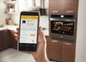 Lorsque vous êtes occupé ailleurs, utilisez votre téléphone intelligent pour commencer la préparation du souper en préchauffant le four à distance. Ou, lorsque vos mains sont pleines, utilisez votre appareil compatible à commande vocale pour régler le temps de cuisson ou la température avec une commande vocale*.