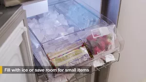 Un séparateur dans le bac à glaçons flexible vous permet d’utiliser tout le bac pour des glaçons ou bien de libérer de l'espace pour une pelle à glaçons, des blocs réfrigérants ou d’autres articles comme des barres de glace à l’eau.
