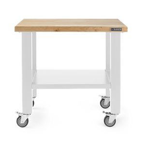 Poste de travail mobile large de 3 pi (91.4 cm)Le poste de travail mobile combine la résistance du bois franc et de l'acier robuste avec la mobilité totale de quatre roulettes pivotantes à 360°. Conçue pour une maniabilité aisée sur des surfaces inégales, chaque roulette se verrouille également complètement en place pour maintenir le poste de travail stable facilitant ainsi les projets nécessitant de la précision. Il est même suffisamment élégant pour le faire rouler à côté du gril pour les rassemblements dans l’arrière-cour