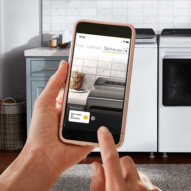 - Disponible sur certains modèles. Sécheuse compatible requise. Connexion au WiFi et application requises. Fonctions sujettes à modifications. Pour les détails et notre avis de confidentialité, visitez whirlpool.ca/connecter.